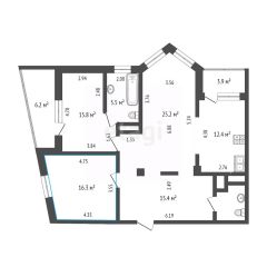 Просторная квартира с паркингом в элитном ЖК "Тройка"Площадь квартиры — 92,7 м²Подземный паркинг — 30 м² на 2 автомобиля (спуск на лифте)