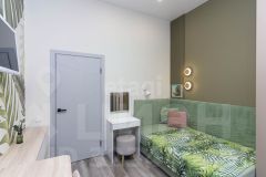 Квартира включает три полноценные спальни, одна из которых оснащена собственной ванной комнатой, кухню-гостиную и гостевой санузел. Панорамные окна, выходящие на солнечную сторону, наполняют квартиры светом. Ремонт выполнен согласно дизайнерскому проекту в светлых тонах, создающих ощущение простора. В квартире предусмотрены комфортные условия: подогрев полов в обоих санузлах, бойлер для горячей воды, фильтры на воду, два кондиционера, многоуровневое освещение и зенитное окно в коридоре.