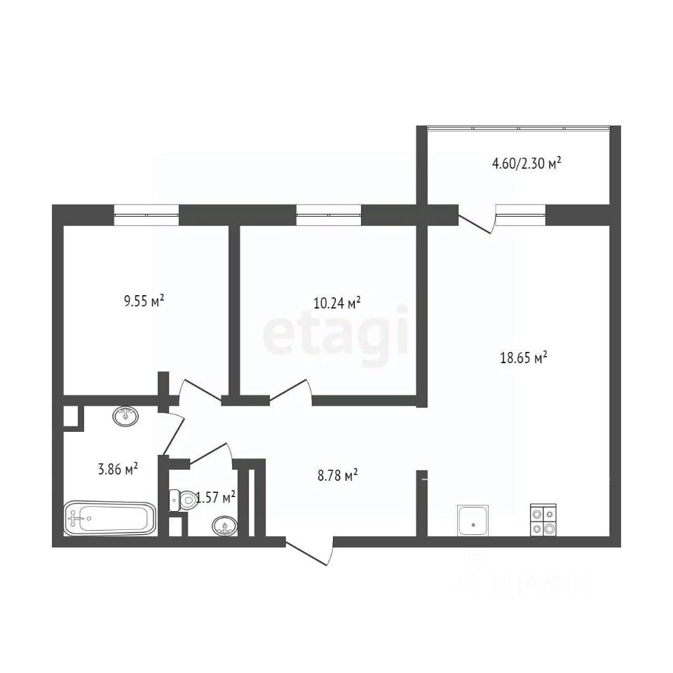 Квартира формата 2+ на 7-м этаже 52.65 кв.м в ЖК Семья.
