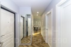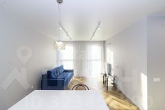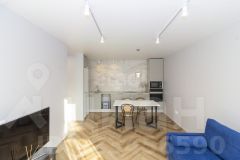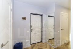 Ремонт выполнен по дизайн-проекту из качественных, дорогих материалов. Стены подготовлены и окрашены, на полу лежит кварц-виниловая плитка с интересным орнаментом, сделан натяжной потолок и современное освещение. Также в квартире сделаны качественные двери с отличной шумоизоляцией и выводы под кондиционер.