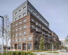 Дом удачно расположен — вдали от шумных путепроводов, в тихом квартале у самой воды.