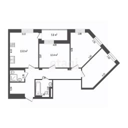 Квартира формата 3+ 75м2 с просторной кухней-гостиной,большим балконом и настандартной планировкой.