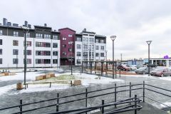 Прямо во дворе — собственные грядки для жителей, где можно выращивать зелень и цветы. Для детей оборудованы детские площадки из натуральных материалов.