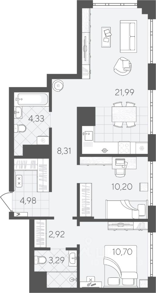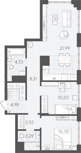 Продаётся 2-комнатная квартира в строящемся доме (ГП-1 (Вадима Бованенко, 7)), срок сдачи: IV-кв. 2025, общей площадью 66.72 кв.м., на 3 этаже. Новый жилой комплекс "Скандиа.Квартал в Слободе" от Специализированного застройщика "Скандиа.Слобода" расположен по адресу: с. Тюмень, по ул. Вадима Бованенко.