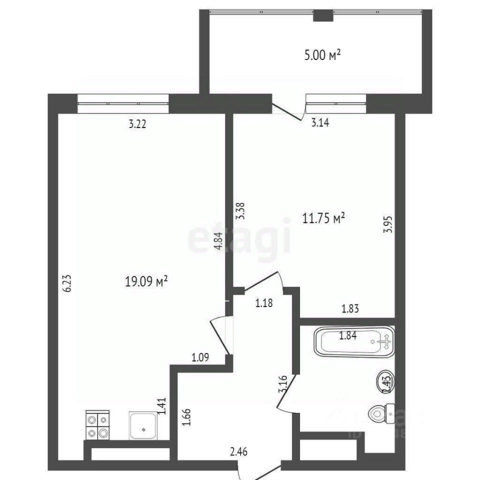 - есть спальня (11 кв.м) с выходом на тёплую лоджию ( 5 кв.м)