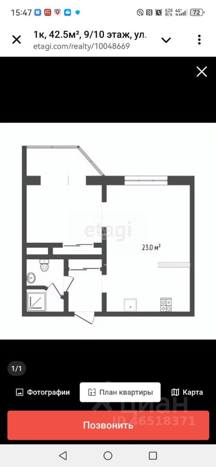 Арт. 124133522 Просторная однокомнатная квартира площадью около 42,5 кв.м., идеально подходит для комфортного проживания молодой семьи из двух-трех человек.