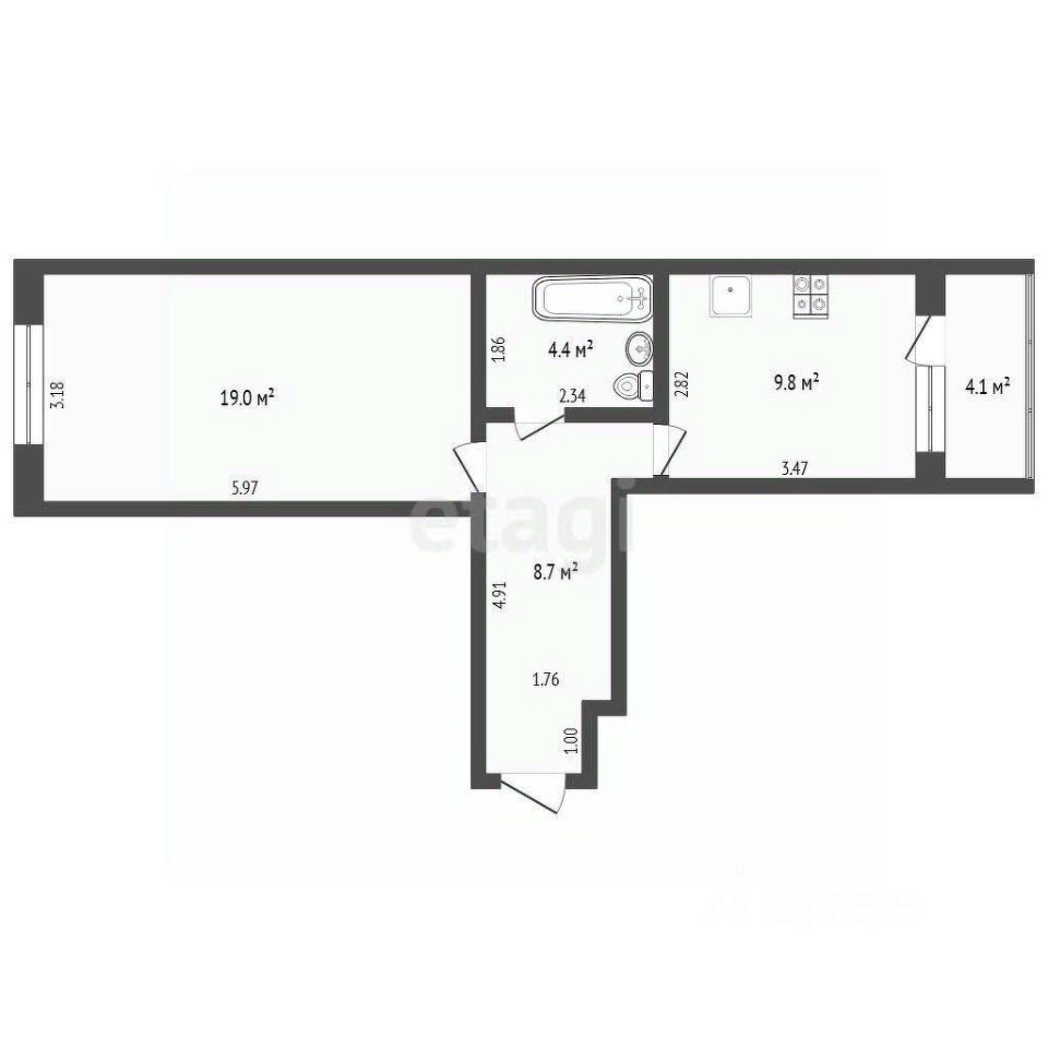 Удачная планировка типа "распашонка" обеспечивает отличную инсоляцию и приватность благодаря раздельному выходу кухни и жилой комнаты на противоположные стороны здания.