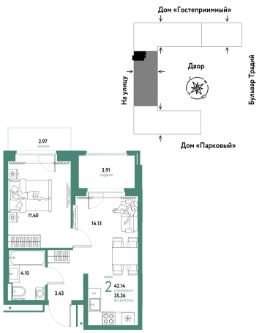 Продается 2комнатная квартира на 10 этаже от застройщика Страна Девелопмент. Площадь квартиры 42,14 кв. м.