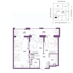Продается 3комнатная квартира в новом микрорайоне "Домашний" в районе Московского тракта рядом с ТРЦ "Колумб". Общая площадь квартиры 68,02 кв. м. Сдача — в 4 квартале 2024 года.