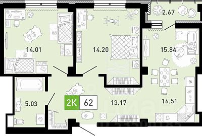 Продаётся 2-комнатная квартира в сданном доме (Константина Посьета, 6), срок сдачи: IV-кв. 2024, общей площадью 62 кв.м., на 15 этаже. Новый жилой комплекс "Пятый квартал в Ново-Патрушево" от застройщика "ТДК" расположен по адресу: г. Тюмень, по ул. Монтажников.