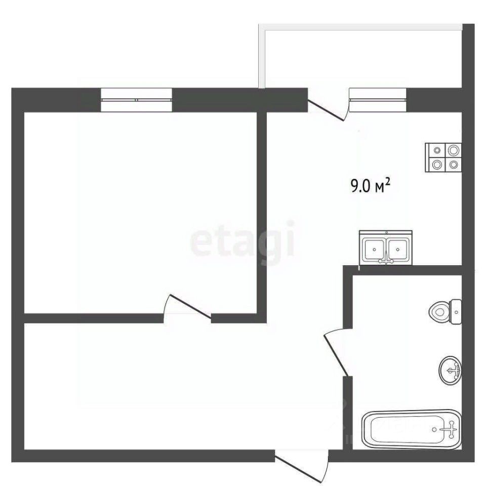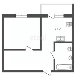 - Кухня площадью 9 кв.м. оборудована новым кухонным гарнитуром, электрической плитой и стиральной машиной — идеальное пространство для приготовления вкусных блюд и поддержания порядка.
