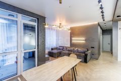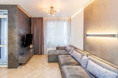 Ремонт в квартире делали для себя: полностью перебрана электрика, сделана дополнительная вытяжка, сантехника и фильтры. Сткны выровнены под маяк и декоративную штукатурку, на полу качественный ламинат. Ремонт и мебель разрабатывались согласно дизайн проекту.