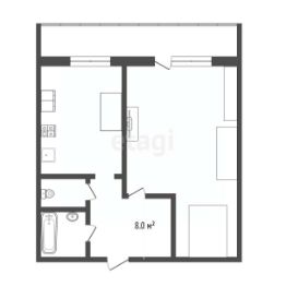Общая площадь - 32,2 кв.м. Кухня - 8 кв.м.