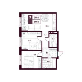 Общая площадь58,55 м²