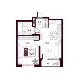 Общая площадь38,11 м²