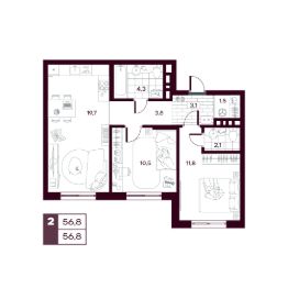 Общая площадь56,85 м²