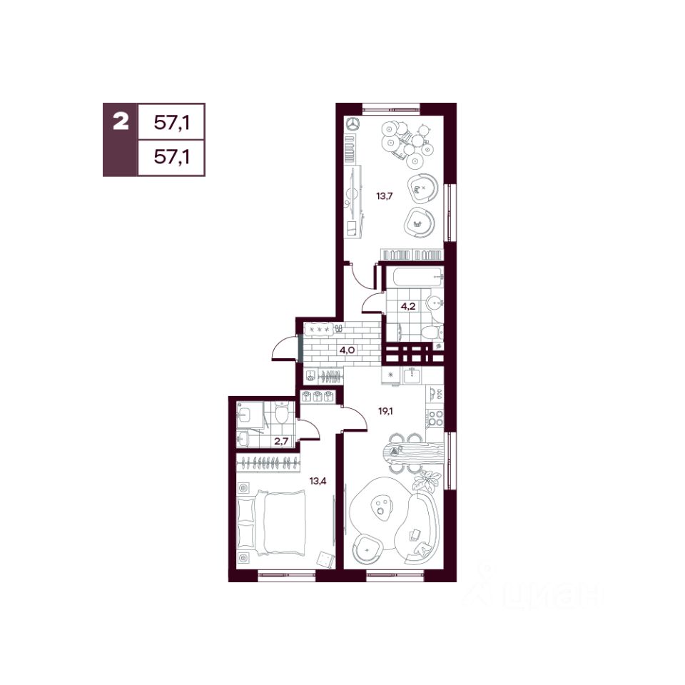 Общая площадь59,17 м²