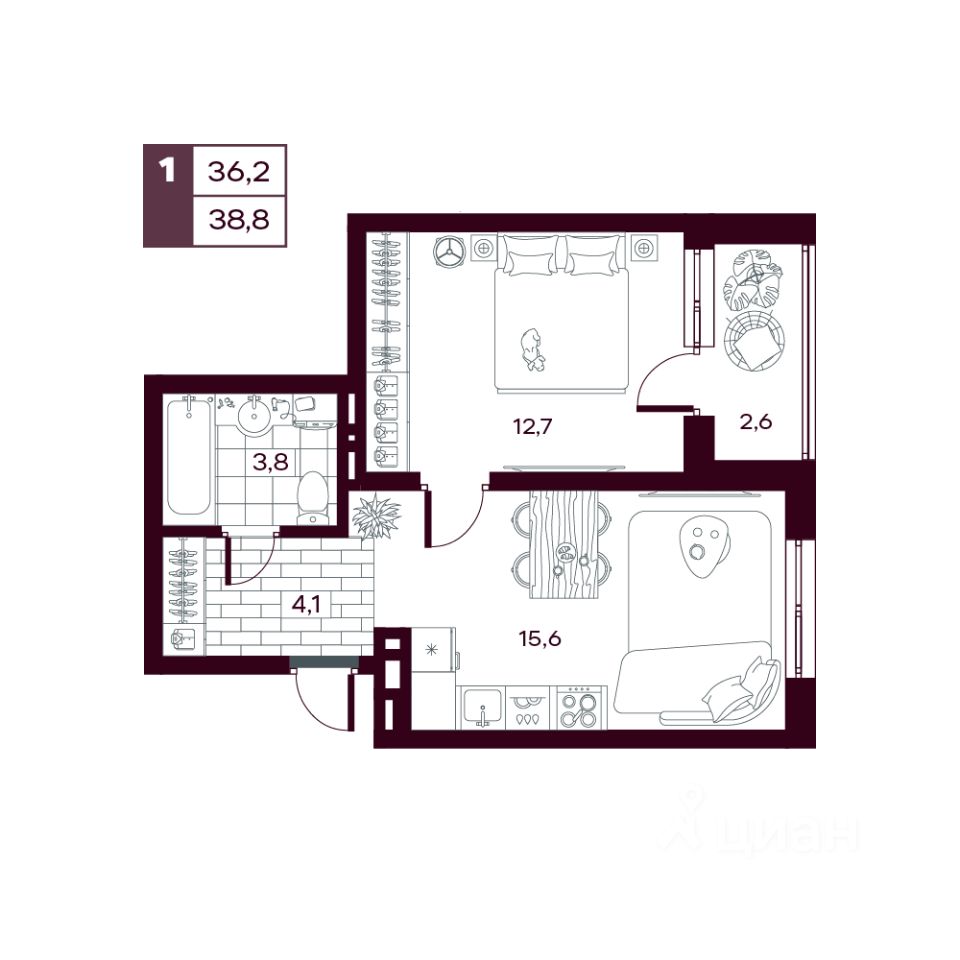 Общая площадь39,3 м²