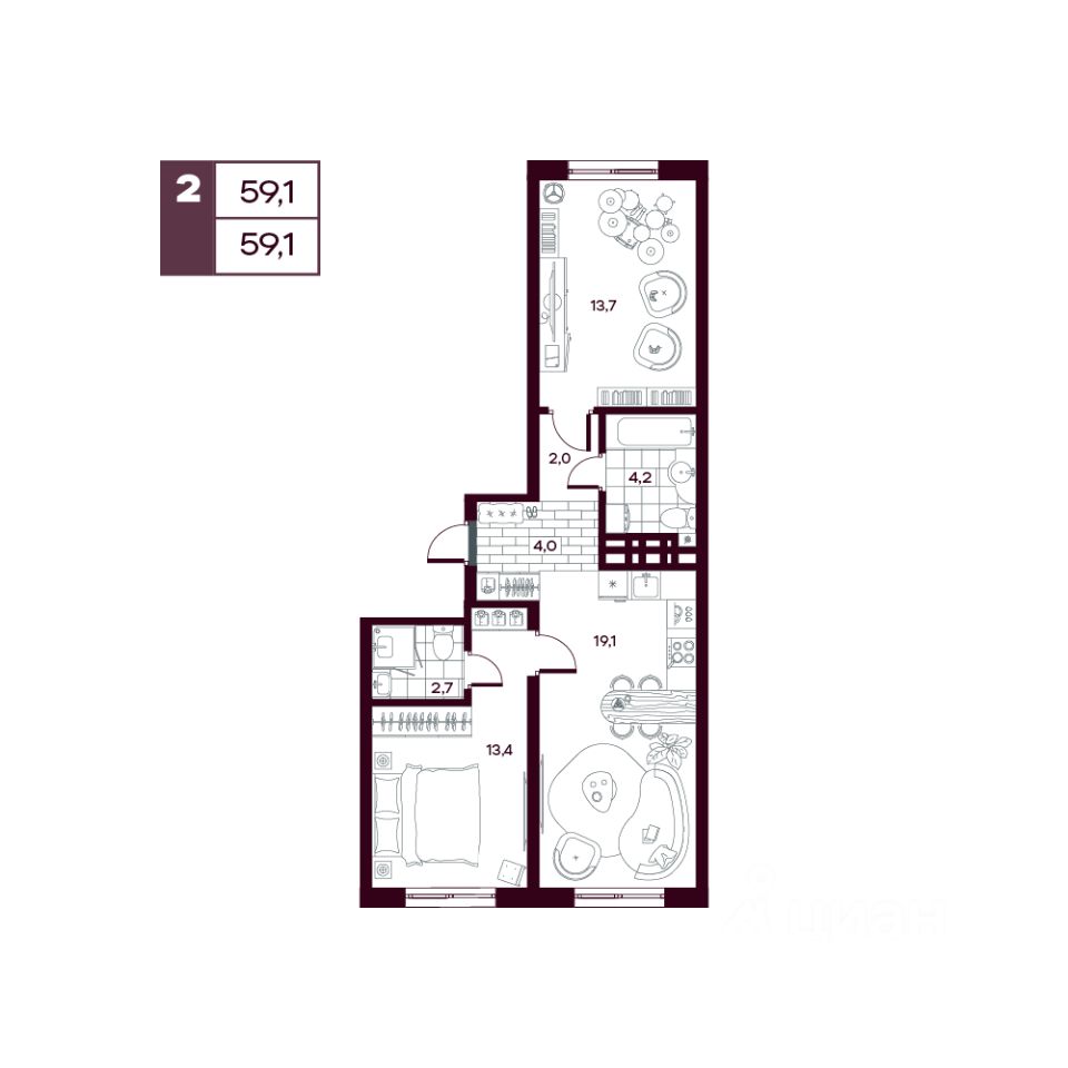 Общая площадь59,17 м²