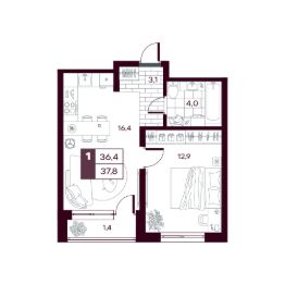 Общая площадь38,36 м²