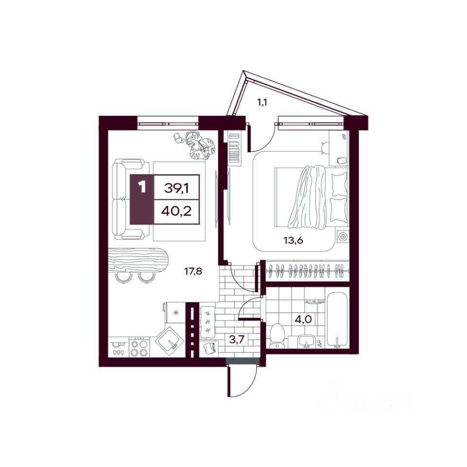 Жилая площадь13,6 м²