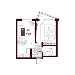 Общая площадь41,07 м²