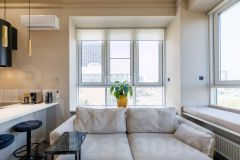 Площадь квартиры составляет 53 кв. м., включающая кухня гостинная 27,5 кв, кабинет 7,5 кв в будушем можно переоборудовать в детскую,спальня 12 кв. Гостиная, обеденная зона и кухня объединены в единое пространство с использованием стильных декоративных элементов и высококачественных материалов.Дизайнерский ремонт включает в себя использование эксклюзивных отделочных материалов, таких как кваревый ламинат, керамогранит, ковролин,создающих элегантный и современный облик помещений. Все элементы интерьера — от напольных покрытий до освещения — были подобраны с особым вниманием к деталям и стилю. Квартира оборудована современной бытовой техникой и мебелью, обеспечивая максимальный комфорт и удобство для жильцов. Широкие-большие, окна 3*3 в кухне столовой, заполняют пространство естественным светом. При продаже остается вся мебель и техника!
