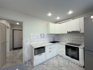Панорамный балкон, шикарный вид на город. Остается всё что на фото: кухонная мебель, встроенная бытовая техника, холодильник Samsung, свч Samsung, телевизор LG на кронштейне, стиральная машина LG, шторы на карнизах.
