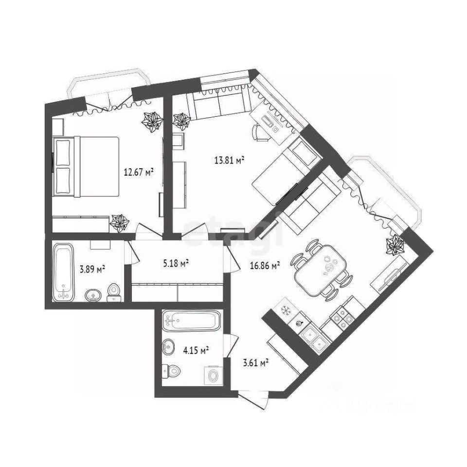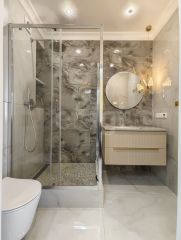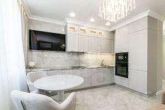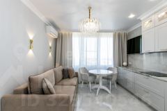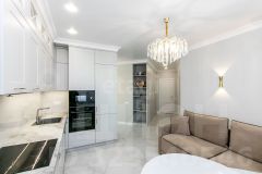В квартире выполнен ремонт по дизайн-проекту, установлена новая мебель, встроенная техника. Мебель выполнена на заказ.