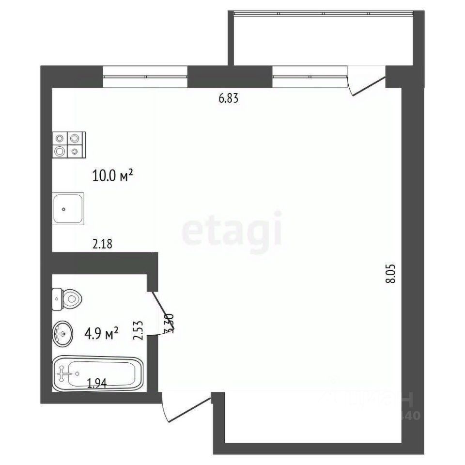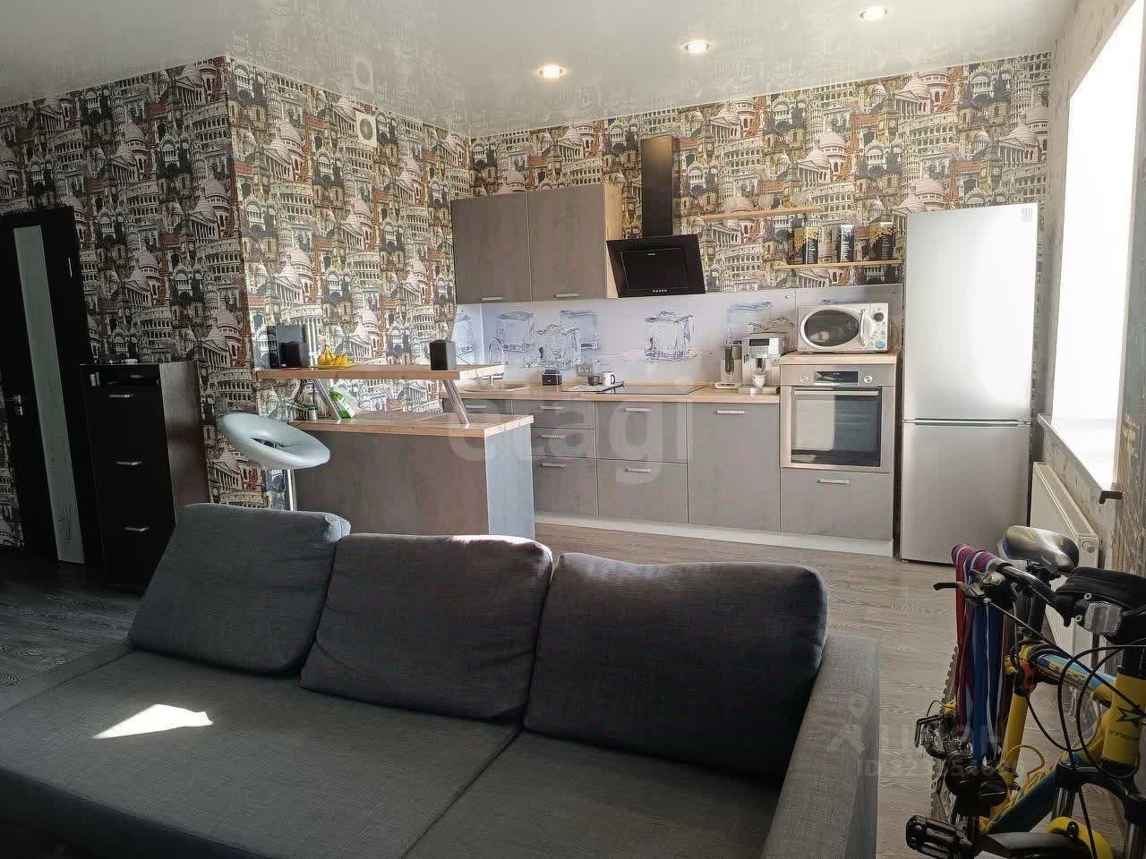 Площадью 48,7 м2. Сделан современный ремонт. Делали для себя, не для продажи. Балкон застеклен 4,3м2