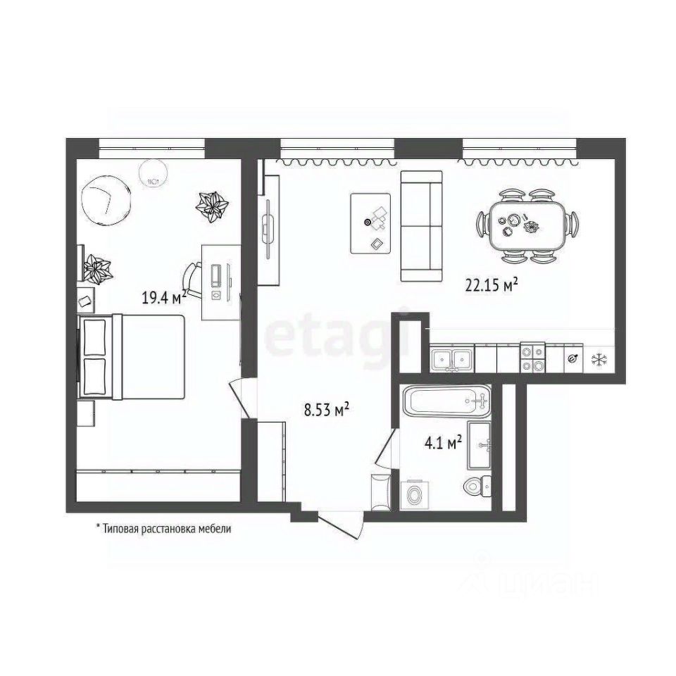 Удобная планировка, где все просчитано до миллиметра включает в себя: просторную кухню-гостиную, спальня правильной формы с объединенной утеплённой лоджией.