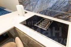 - Кухонный гарнитур: выполнен на заказ, остаётся новым владельцам.