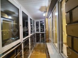3) Уютный утепленный балкон: новый деревянный пол; лакированная кирпичная стена. На балкон проведено освещение.