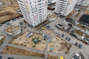 Благоустроенный двор с детскими площадками по возрастам, установлены турники, тренажеры, корт, есть площадка для выгула собак.