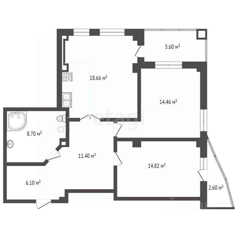 18,7 м²