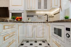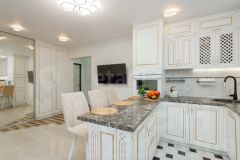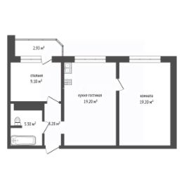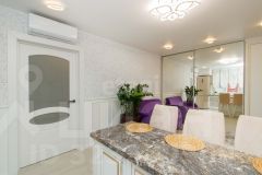 В квартире выполнена функциональная перепланировка, благодаря которой образовалась просторная кухня-столовая площадью 19 кв.м. Она удобно разделяет две спальни: одну площадью 10 кв.м и вторую 19 кв.м. Это создает комфортное пространство для жизни и отдыха.
