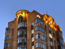 Цоколь дома, отделка крылец и въезд в подземную парковку облицованы полированной плиткой из натурального гранита.