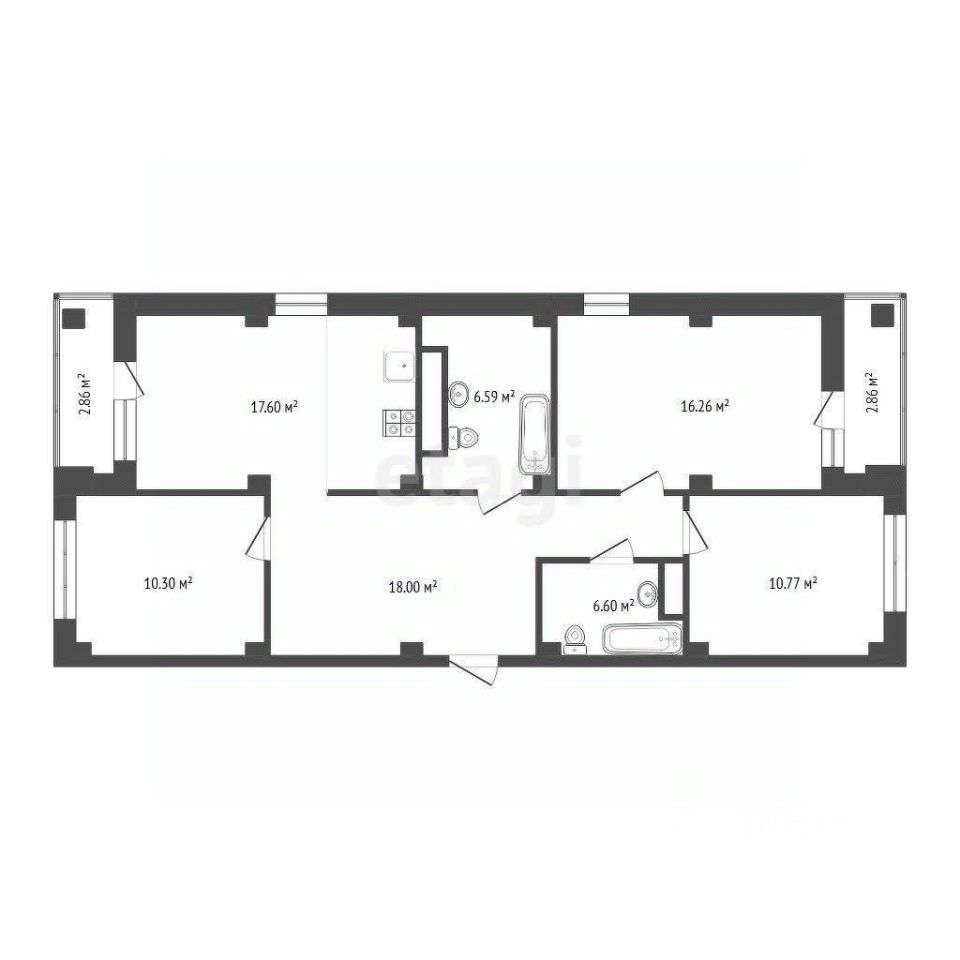 Оптимальная планировка: просторная кухня - гостиная 17 кв.м., 3 изолированных комнаты, просторный сан.узел, есть возможность организовать второй - вместо гардеробной. Две панорамные лоджии.