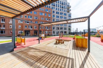 ЖК "Домашний"- это первый цифровой район, где жители заходят в парадные по Face ID, автомобили заезжают в паркинг по сканированию номера, а лифт автоматически спускается на первый этаж при открытии домофона. Во дворах — USB-розетки и беседки с подогревом.