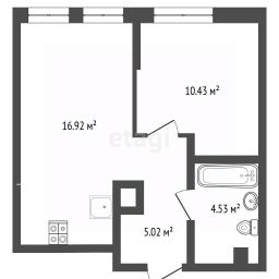 Просторная квартира формата 1+ площадью 36,7 м² в современном микрорайоне "Домашний".