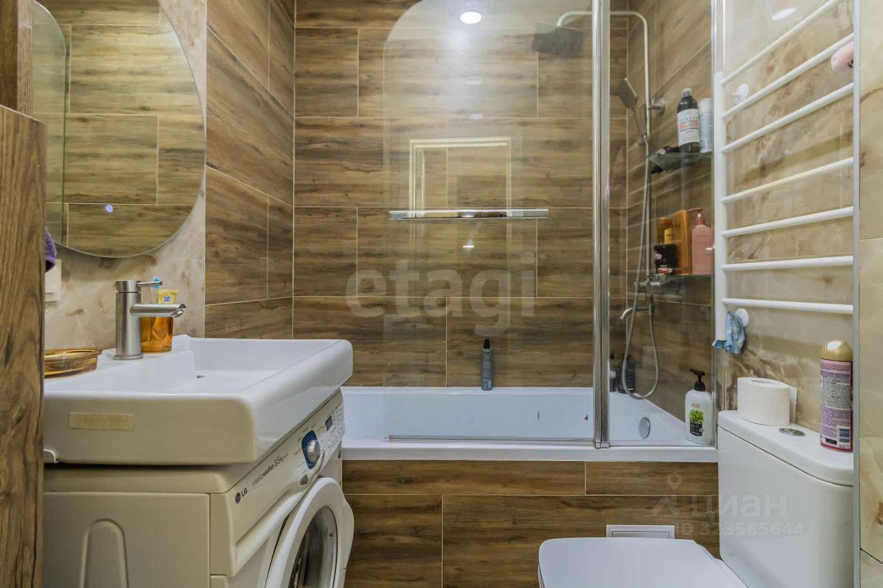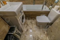 - Санузел отделан керамогранитом, что обеспечивает долговечность и легкость в уходе.