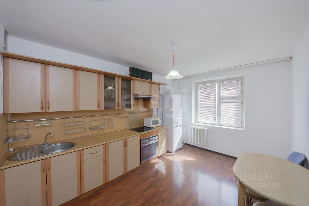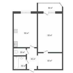 Однокомнатная квартира с просторной комнатой и кухней 12 кв.м., которую при желании можно переделать в кухню-гостиную.