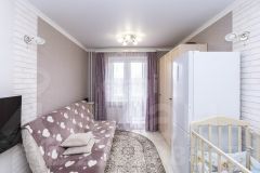 Предлагаем вашему вниманию стильную квартиру-студию с современным ремонтом в спокойных тонах. Уникальное зонирование пространства выполнено с использованием различных материалов, включая фактурную кирпичную стену и разнообразные обои, что создает атмосферу уюта и гармонии.