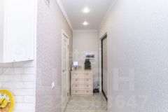 Квартира оснащена продуманным освещением, выделяющим входную группу, кухонную зону и зону отдыха. На полу прихожей и ванной комнате уложен керамогранит, а в зоне отдыха — качественный ламинат, что добавляет дополнительный комфорт.