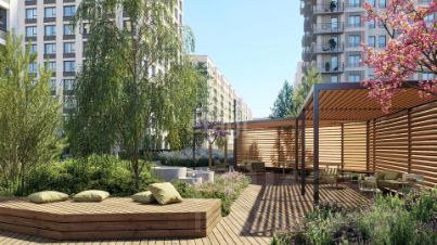 Проект расположен на берегу реки, в одном из самых живописных и экологичных районов Тюмени. По мастер-плану здесь будет восемь домов. Ядро застройки составляют замкнутые кварталы переменной этажности. Их высотность понижается по мере приближения к реке. На углах участка мы разместили башни-доминанты. До центра и городской набережной — 7 минут на автомобиле, 20 минут на общественном транспорте. В пешей доступности — лесопарк и Аллея Выпускников.