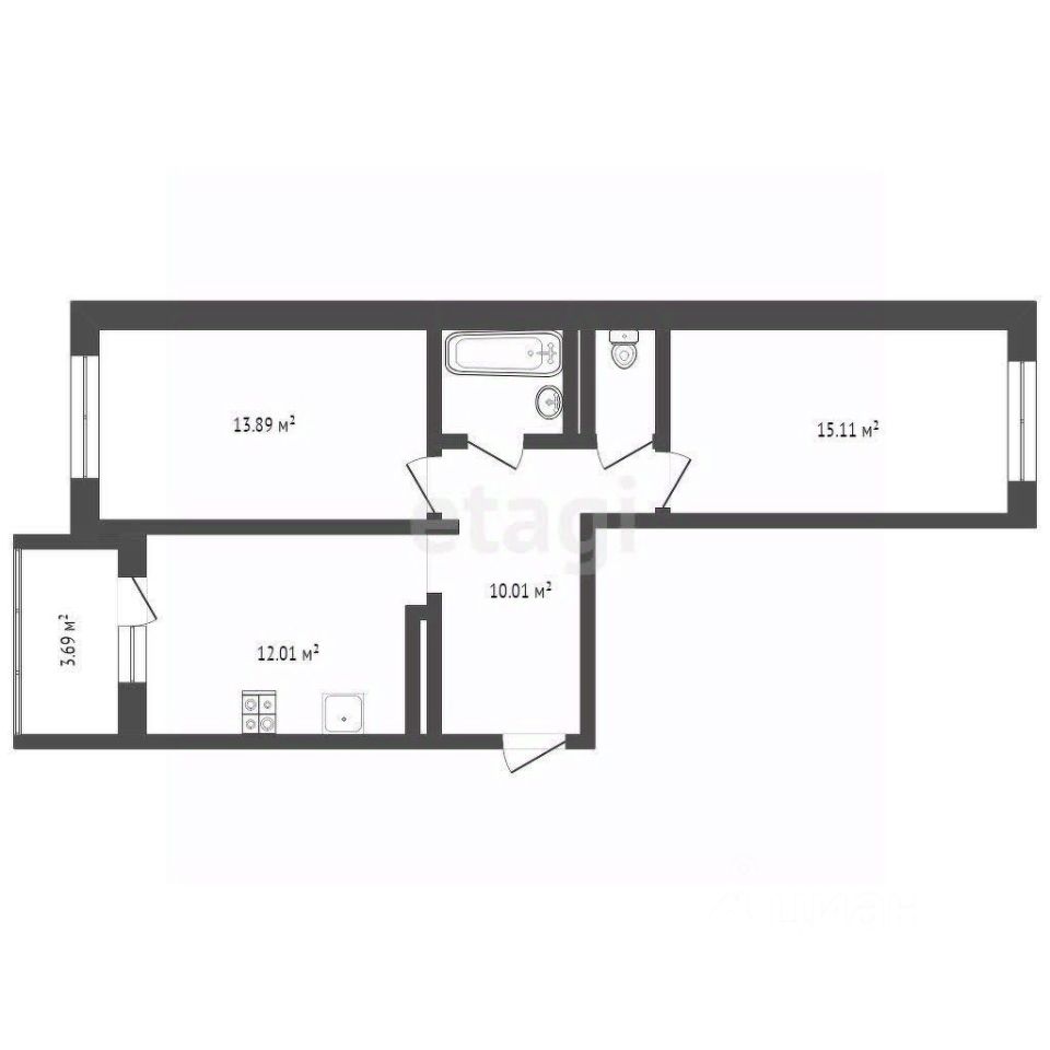 ПРЕИМУЩЕСТВО: большая кухня - гостиная 12 кв.м. с выходом на лоджию.