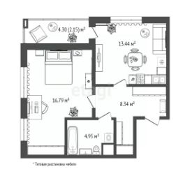 Квартира формата 1+, расположенная на комфортном 1-м этаже с удобной планировкой: просторная кухня -гостиная 13.4 кв.м., спальня 16,7 кв.м.,совмещенный санузел 4.9 кв.м, коридор площадью 8,34 кв.м., а также лоджии площадью 2,15 кв.м. (с учётом понижающего коэффициента 0,5). Окна спальни смотрят прямо на лес - это единственная квартира из 1 очереди с таким видом. Лоджия с панорамным остеклением.