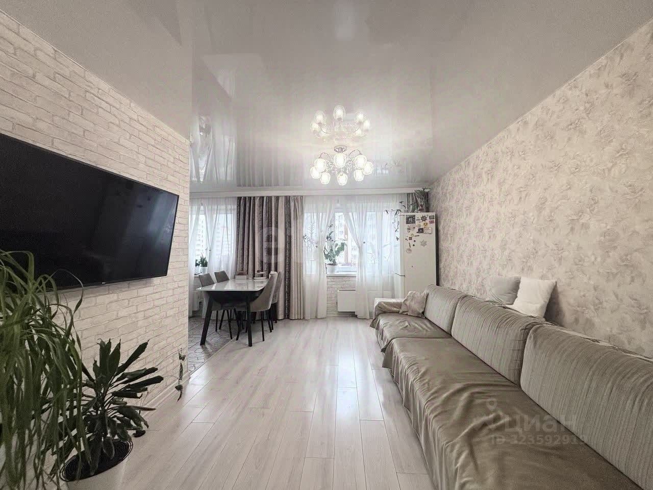 Уютная двухкомнатная квартира с современным ремонтом, площадью 65.3 квадратных метров. Квартира расположена на третьем этаже