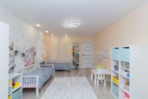 - В квартире выполнен качественный ремонт! Кухонный гарнитур с большим рабочим пространством; тёплый пол в санузле! Детская комната 19кв.м.- это настаящая игровая зона, в которой детям комфортно находится! Во всей квартире на полу ламинат. Потолок натяжной, с точечными светильниками и зонированным светом.