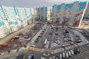 - Дом с закрытой общей дворовой территорией. Здесь большая детская и спортивная площадки, а так же футбольное поле.
